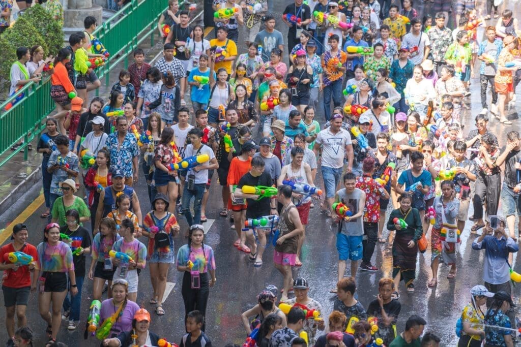 曼谷潑水節(Songkran)是泰國傳統的水仗節,通常於每年的4月13日至15日舉行,也被稱為泰國新年。曼谷潑水節歷史悠久,起源可以追溯至泰國歷史悠久的梵文傳統。