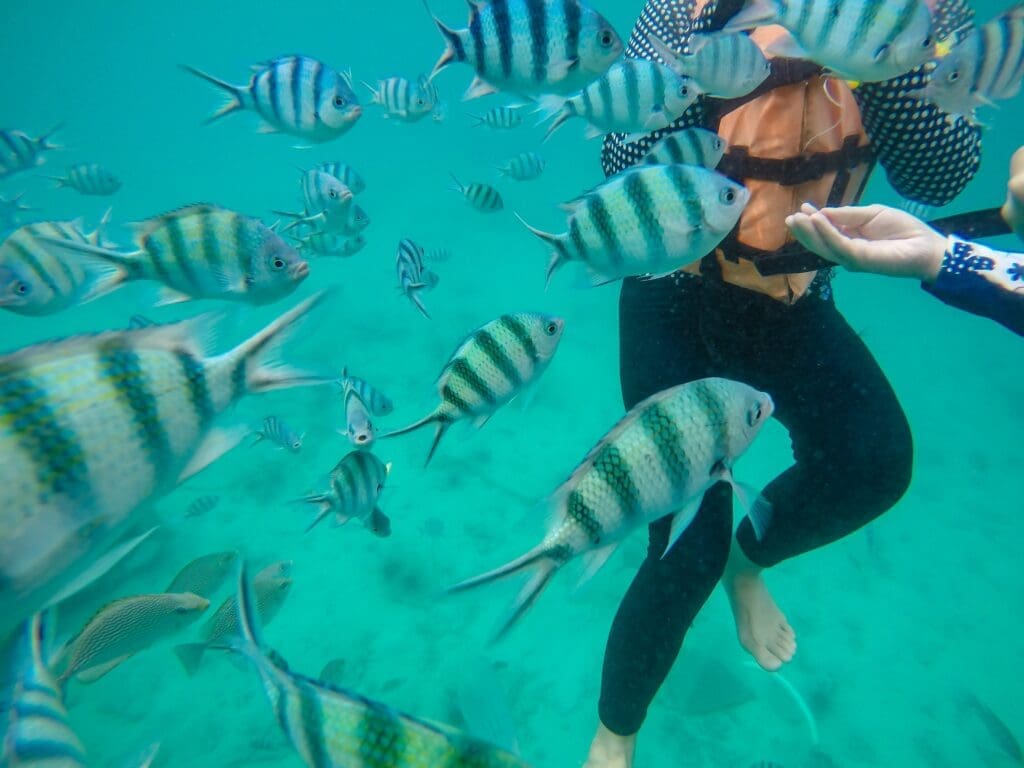 碼頭搭乘快艇→快艇環島尋遊海天一線→海上浮潛觀賞海底世界+熱帶魚→淺水灘餵食熱帶魚群(含救生衣.蛙鏡.呼吸管)→沙美島月牙海岸倘佯一夏→芭達雅→泰式按摩約2小時