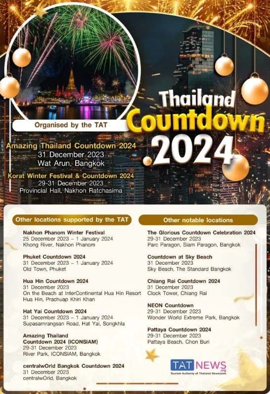 除了曼谷和呵叻府,泰國的其他地區也將舉行2024年新年慶祝活動,讓我們簡要了解一下: