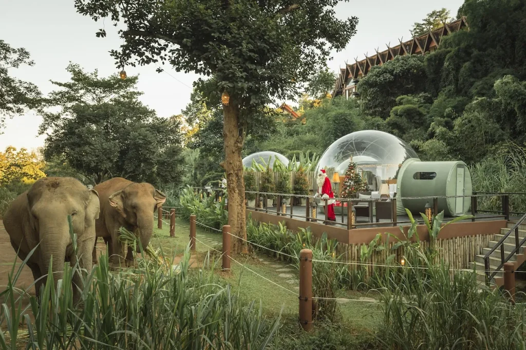 安納塔拉最具話題性的特色就是**「叢林泡泡屋」**——透明圓頂帳篷,讓你一整晚可以看著可愛的大象在你身旁悠閒地吃草、走動、打盹。