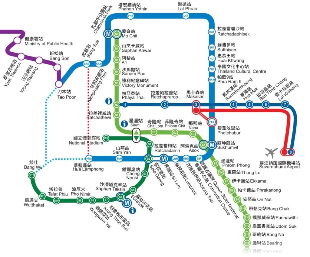 | Siam站 (暹羅站) | 百麗宮、暹羅海洋世界、暹羅廣場、網紅天橋 | 購物、娛樂、打卡熱點 |