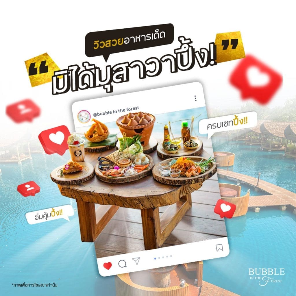 Bubble in the Forest Cafe 有許多特別設計的拍照景點,包括簍空躺椅、發呆亭、粉色浴缸、熱氣球和森林鏡子等。每個角落都是拍照的好地方,讓您隨時隨地都能捕捉到美麗的瞬間。