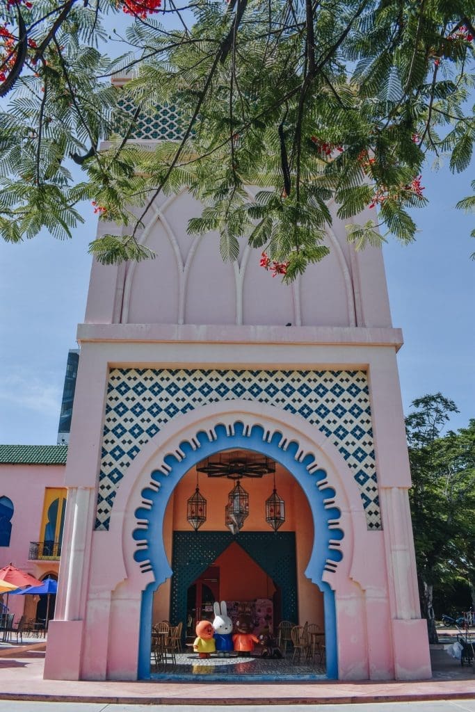 駱駝共和國的設計靈感來自於摩洛哥的建築風格。整個園區被打造得宛如一座迷人的沙漠城市,色彩繽紛的建築、精緻的雕刻以及異國風情的裝飾,處處展現出濃厚的中東氛圍。這裡不僅適合拍照,還能讓遊客在視覺上享受一場盛宴。