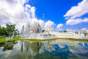 行程景點介紹 白廟 由泰國藝術家 Chalermchai 設計的白色佛寺,通體以白色與鏡面裝飾,象徵純潔與智慧