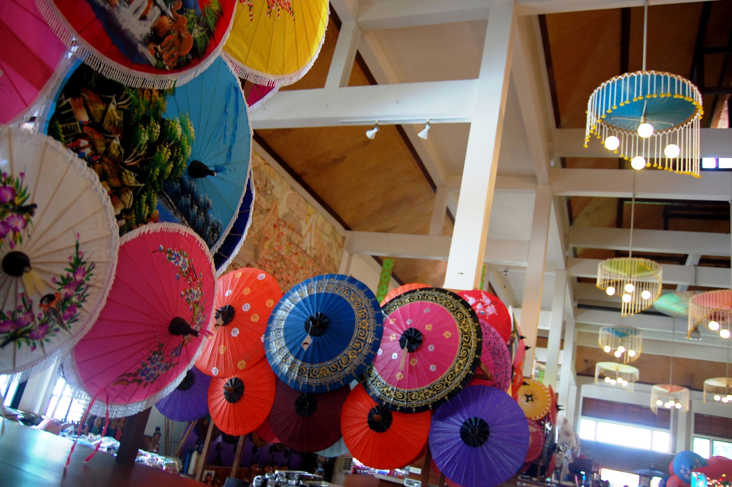 博桑紙傘村是泰北手工藝的代表,專門製作色彩鮮豔的紙傘與繪畫裝飾。遊客可參觀工匠製作過程,欣賞細緻的彩繪技術,也可親手嘗試彩繪體驗。這裡充滿濃厚藝術氛圍,紙傘與彩繪作品更是極具收藏價值的特色伴手禮。