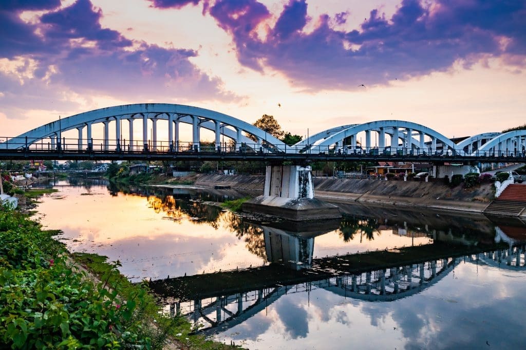 南邦標誌性地標,以純白橋身搭配復古鐵欄杆著稱。橋上可眺望河川與古城景致,是拍照、散步與感受南邦緩慢氛圍的最佳點。夜晚點燈後更顯浪漫。