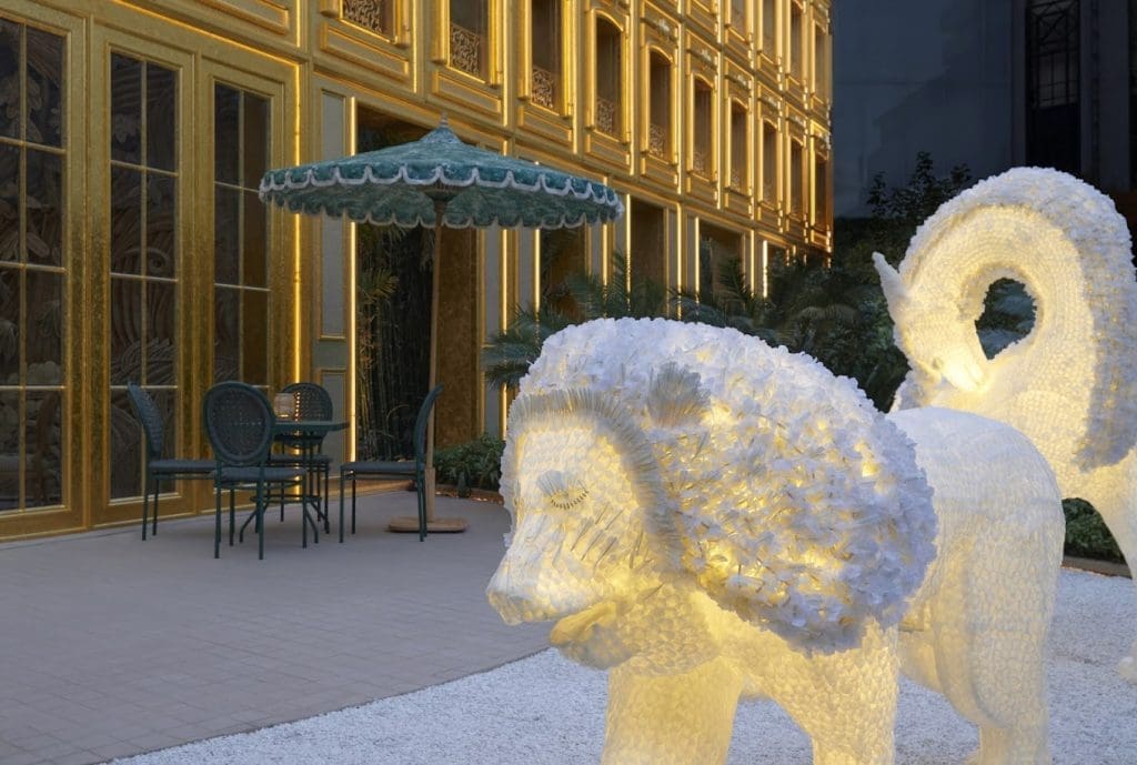 位於花園的兩件大型裝置藝術由Wichulada Pantharanuwong以回收材料製作而成,象徵力量與夢幻,既環保又具有視覺衝擊力。
