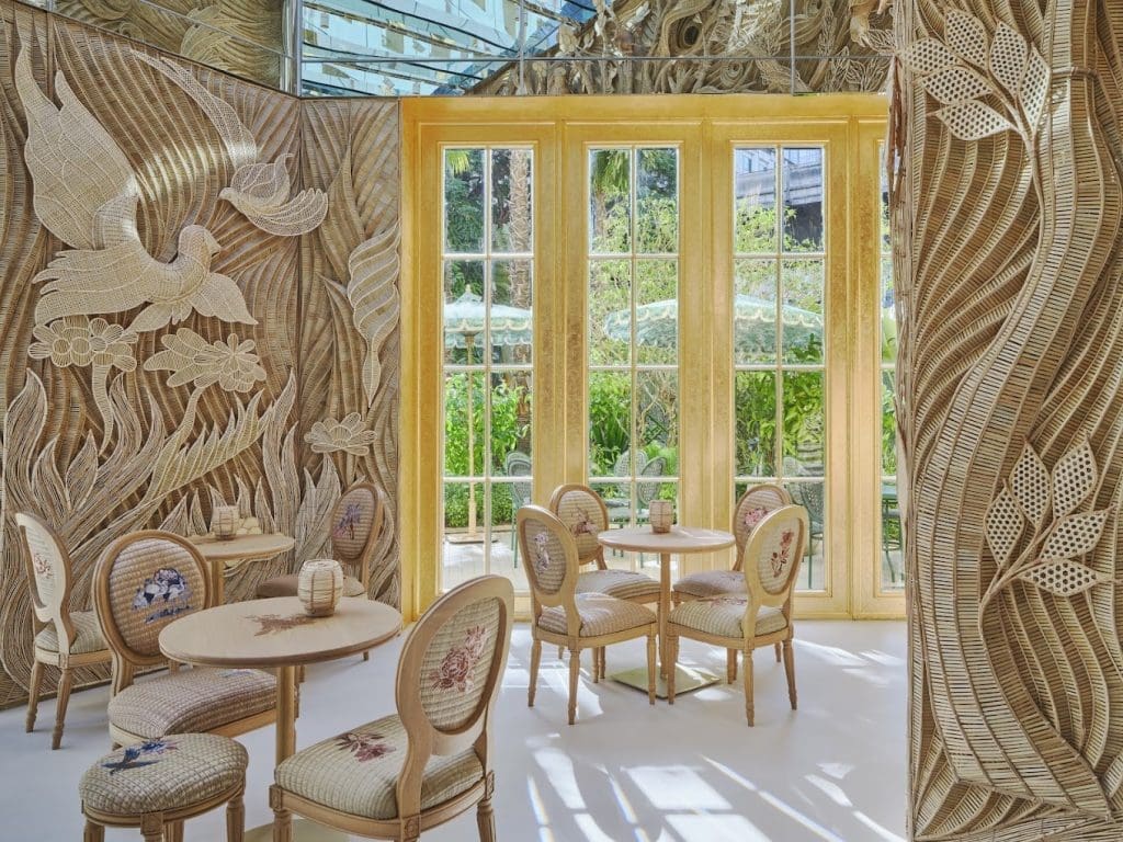 咖啡館擁有室內與室外兩個區域,無論是在優雅的室內空間享用下午茶,還是在花園裡沐浴陽光,都能感受到Dior所帶來的極致體驗。