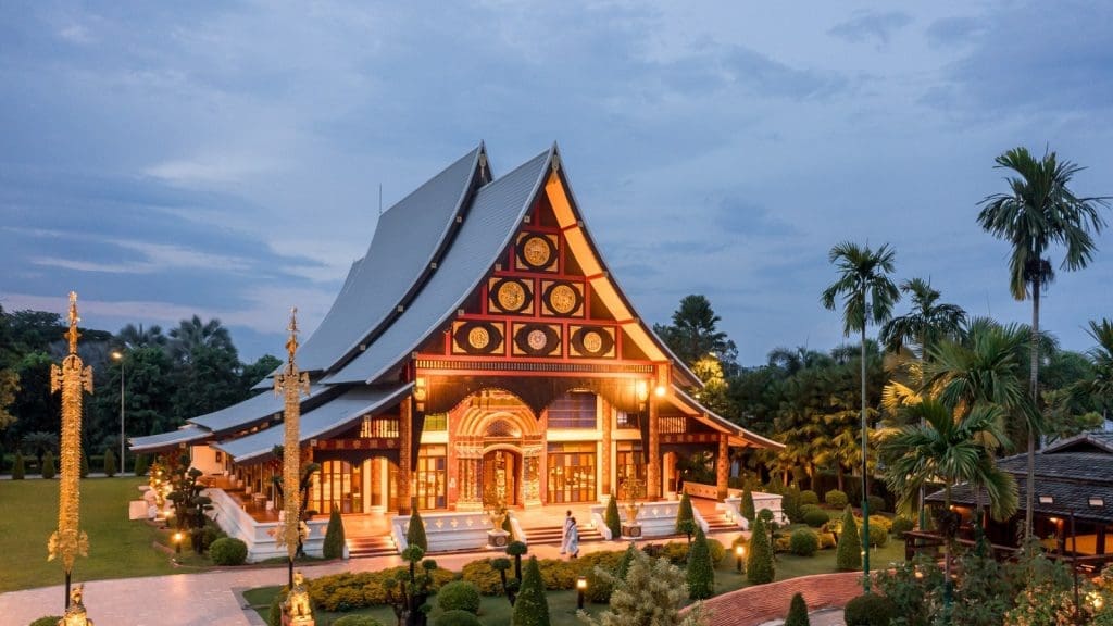 現場提供租借蘭納風傳統泰服,無論是古典優雅還是色彩繽紛,穿上後彷彿穿越回古代清邁王朝!搭配莊園湖景與木造建築,拍照打卡一次滿足!