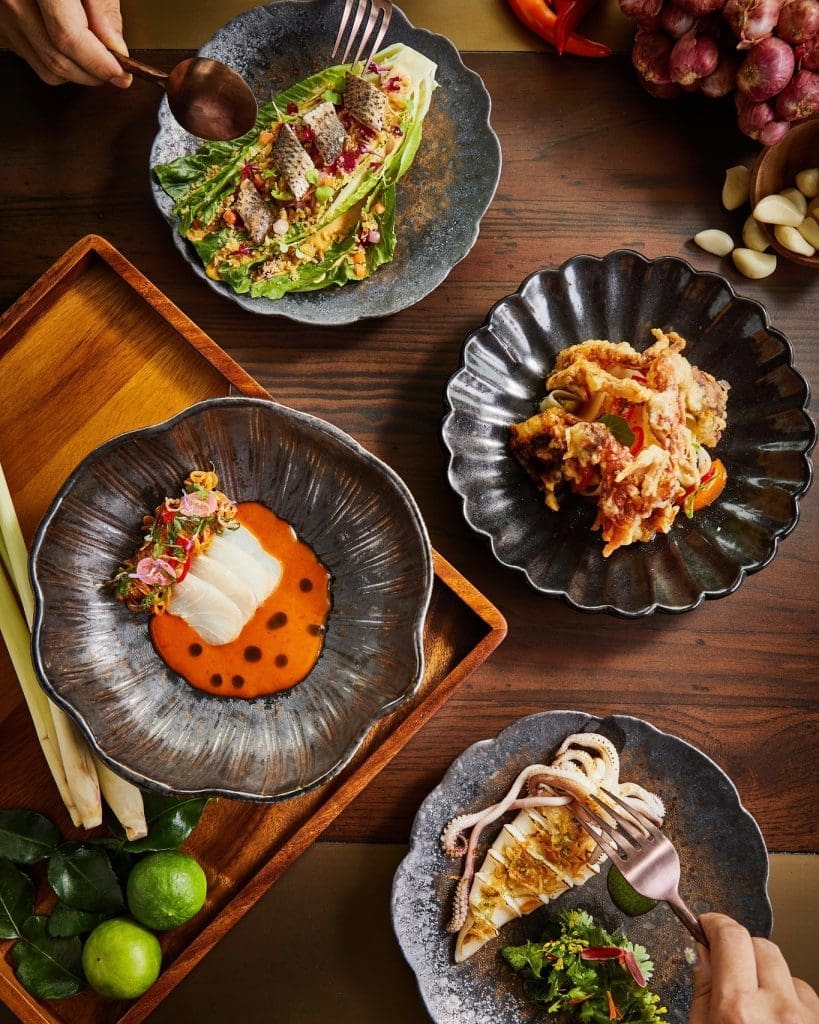 Le Du Kaan 的菜單以頂級食材和傳統烹飪技法為基礎,運用來自泰國各地的時令食材,創造出不拘一格的泰式風味。無論是從農田到餐桌的鮮蔬,還是從水域直送的海鮮,您都將在每一道料理中品嚐到大自然的濃郁滋味。這些佳餚傳承了數代人的烹飪智慧,以現代手法展現,讓您在享受美食的同時,也能體驗泰國文化的深厚底蘊。