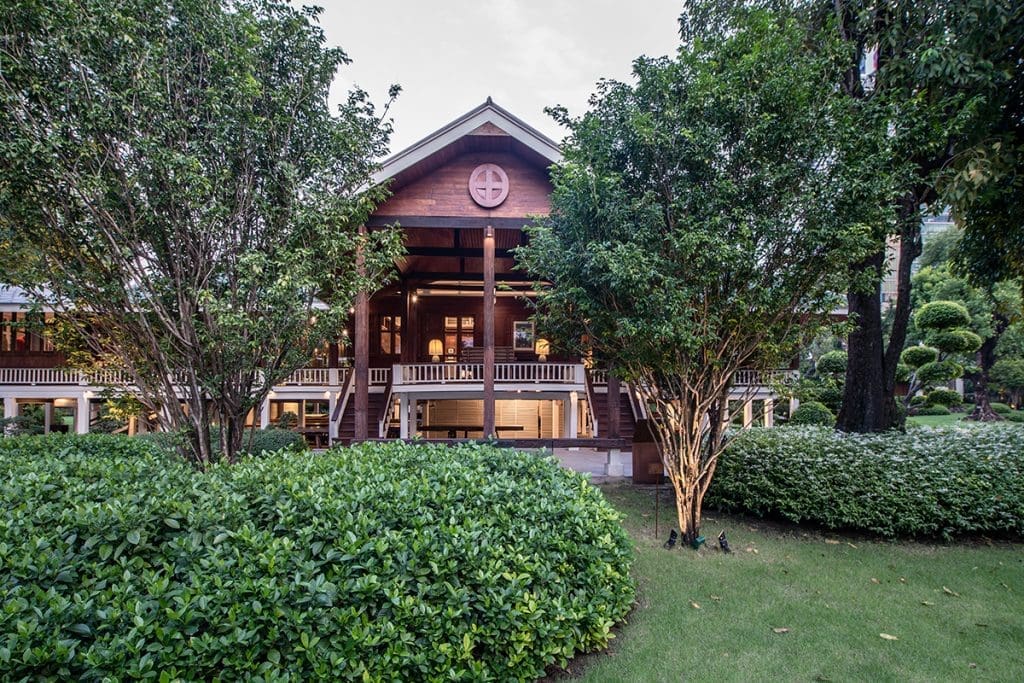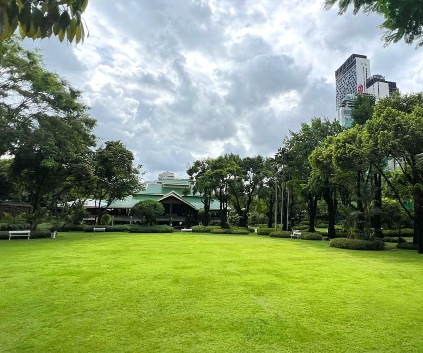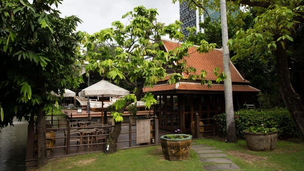奈樂莊園的戶外空間佔地寬廣,滿是百年古樹、草地、蓮花池與熱帶植物,完全就是曼谷市中心最舒服的綠地。