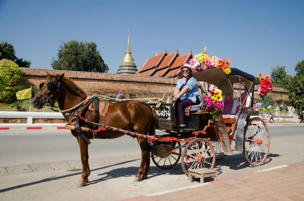 南邦是泰國唯一仍保留馬車文化的城市,坐上敞篷馬車穿梭古城小巷,可欣賞木造古屋、寺院與日常生活景象。馬蹄聲敲過街道,是最具特色的復古體驗之一。拍照感滿分,亦非常適合親子與喜歡慢旅行的旅客。