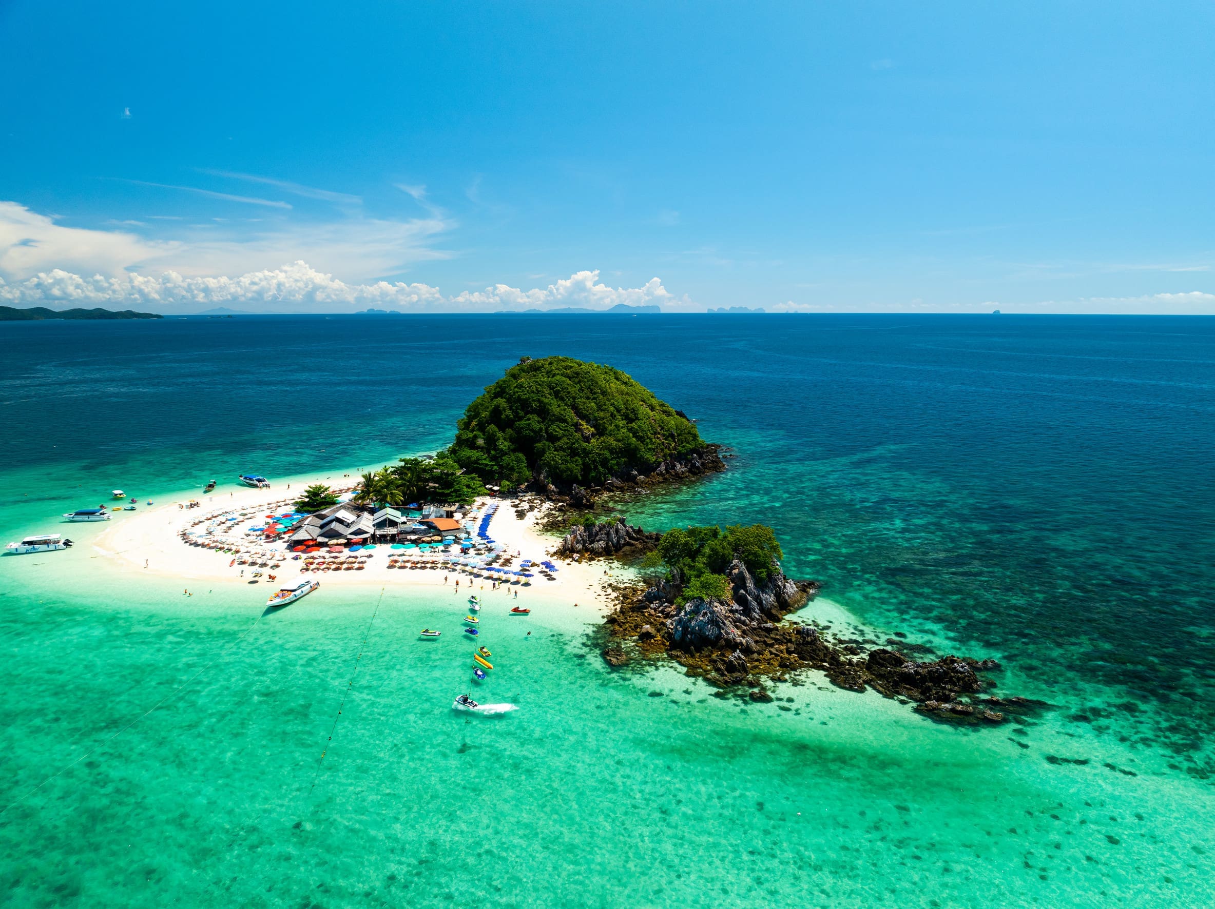 珊瑚島以豐富海底生態聞名,可盡情浮潛、香蕉船、海上活動。碧藍海水與白沙灘交織出度假天堂般的景致。