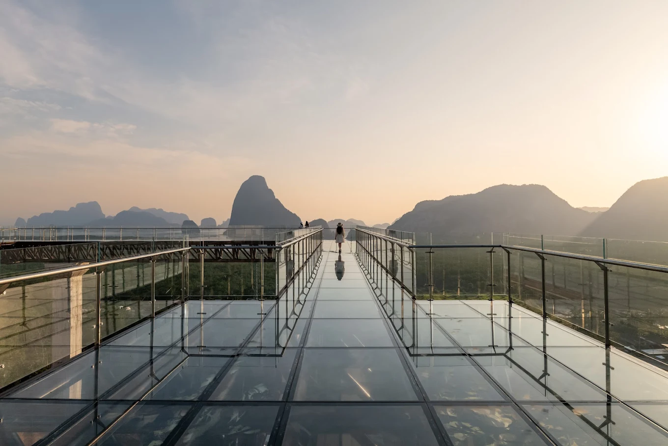 Beyond Skywalk Nangshi擁有壯麗攀牙灣全景與透明玻璃步道,能俯瞰石灰岩島嶼及湛藍海景。這裡是拍攝日出與日落的絕佳地點,白天景色壯闊,夜晚可觀賞繁星點點,是近年普吉必訪的熱門觀景平台。