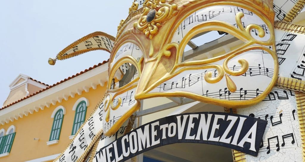 運河旁,貢多拉船緩緩行駛,提供了一種獨特的觀光方式。這些傳統的威尼斯船隻讓遊客在水上欣賞沿岸的風光,浪漫至極,是遊園體驗中不可或缺的一部分。