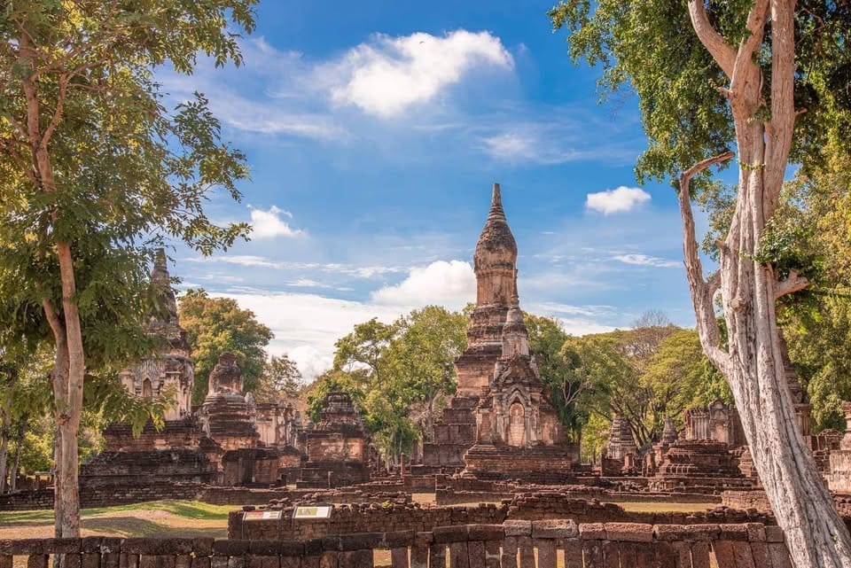 素可泰王朝首都遺址,是泰國文明的發源地之一。園區內可騎腳踏車遊覽古寺遺跡、池塘與石碑,充滿歷史韻味。