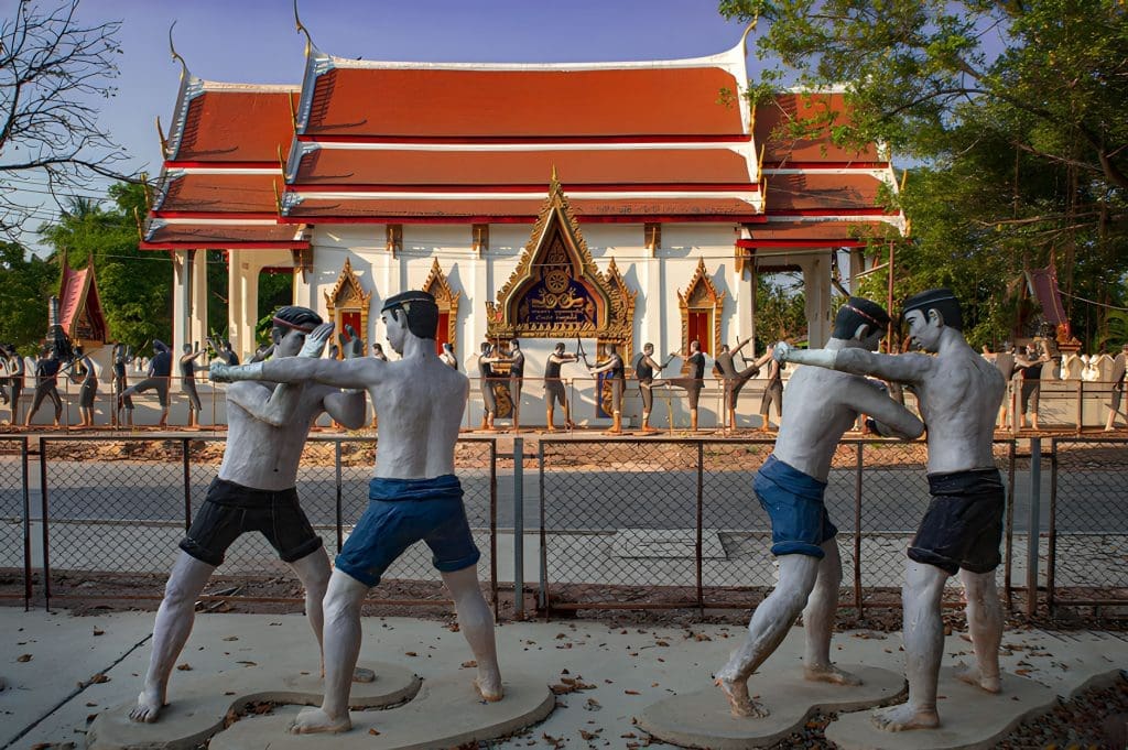 在泰國的【泰拳公園】,您可以近距離體驗這項傳統武術的精髓。公園內有一整排逼真的1:1泰拳人像,栩栩如生地展現泰拳中的拳、腳、膝、肘的攻防技巧,讓人感受到泰拳的力量與精妙。這些人像忠實呈現了泰拳選手在比賽和訓練中的經典姿勢,是學習泰拳基本動作和拍照打卡的理想地點。遊客們可以在這裡模仿不同的泰拳動作,體驗泰拳帶來的力與美,留下專屬的紀念照片。