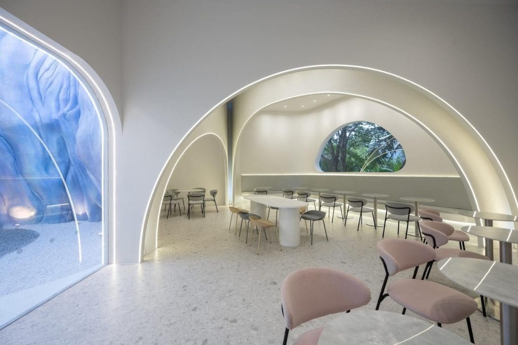 由知名設計團隊【Unknown Surface Studio】打造,Uncloud Coffee以【淡紫色】為主調,搭配流線型的建築設計,走進去的瞬間,彷彿被溫柔包圍。