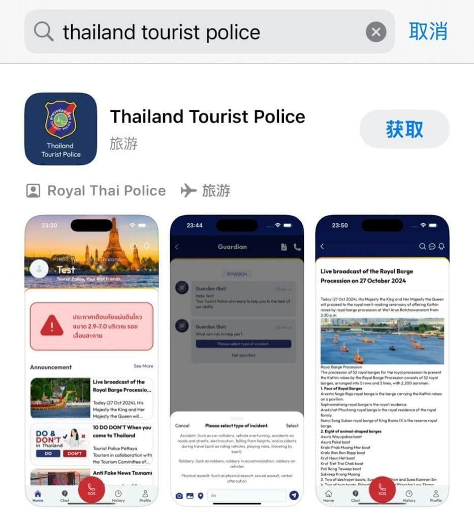 「Thailand Tourist Police」是一款由泰國警方推出的手機應用程式,旨在保障遊客的生命財產安全,提升旅遊體驗。該App支援包括中文在內的6種語言(英文、中文、泰文、日文、韓文、俄文),並提供即時幫助功能。無論您使用台灣電話號碼還是其他國際號碼,都可以輕鬆註冊。