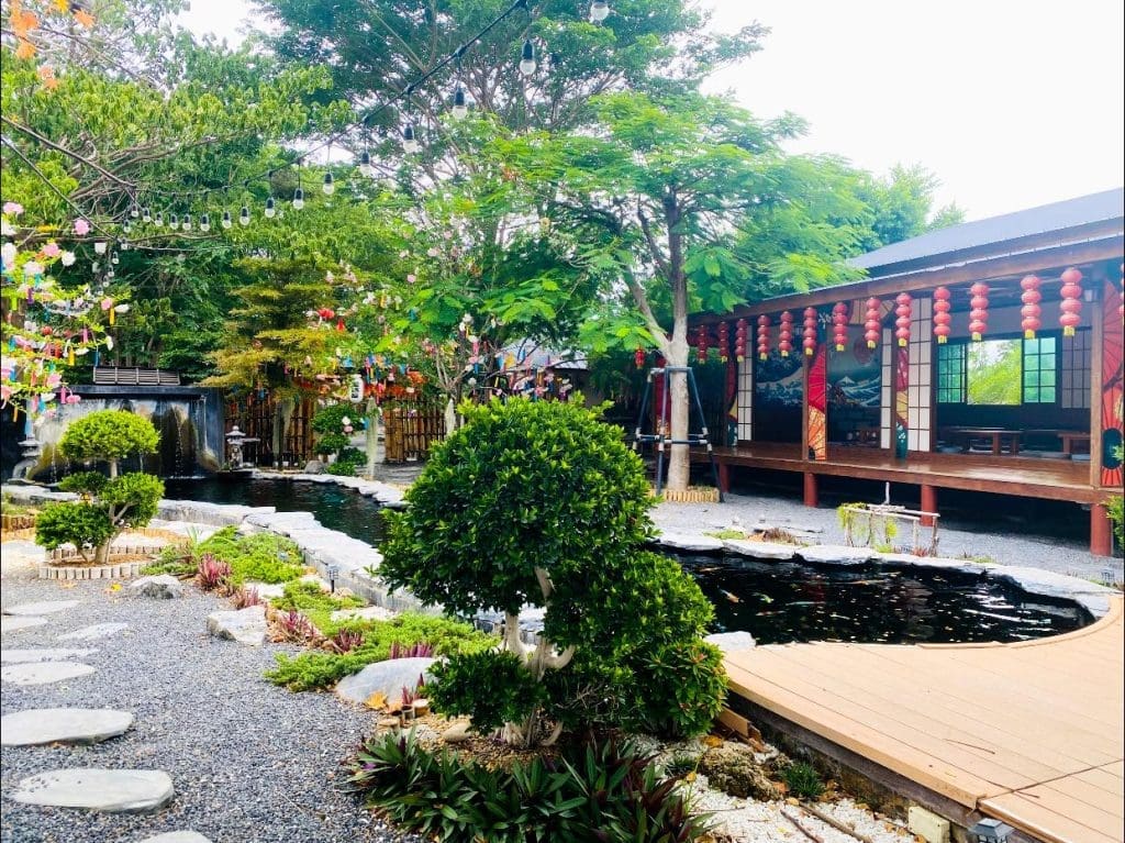 富美江戶日本村內有一間非常寬敞的咖啡館,這裡不僅提供各種美味的日式飲品和點心,還是欣賞美景的絕佳場所。從咖啡館的前面到後面,遊客可以看到壯觀的Wat Tham Suea景色,這為公園增添了一層神秘而美麗的背景。