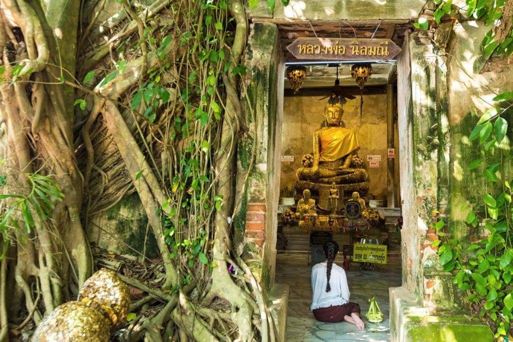 樹中佛寺是泰國著名的靈驗廟宇之一,常被列為「泰國十大靈廟」之一。這座寺廟之所以特別,是因為其主殿嵌入了一棵大樹中,被稱為「樹中廟」,其獨特的建築結構和神聖氛圍讓人不禁為之驚嘆。廟內供奉著釋迦牟尼佛像,許多信徒專程前來,為的是祈求財運和事業順利,並獲得內心的平靜。
